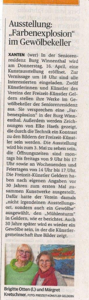Veröffentlichungsdatum 2026-04-16 Ausstellung Wir verbinden Kunst + Gewölbe , Freizeit Künstler Geldern e.v. Freizeitkünstler Geldern e.V. Nierrhein Nachrichten965.16 KB Freizeitkünstler Geldern e.V. Presseankündigung RP 16.04.2026.jpg90.42 KB